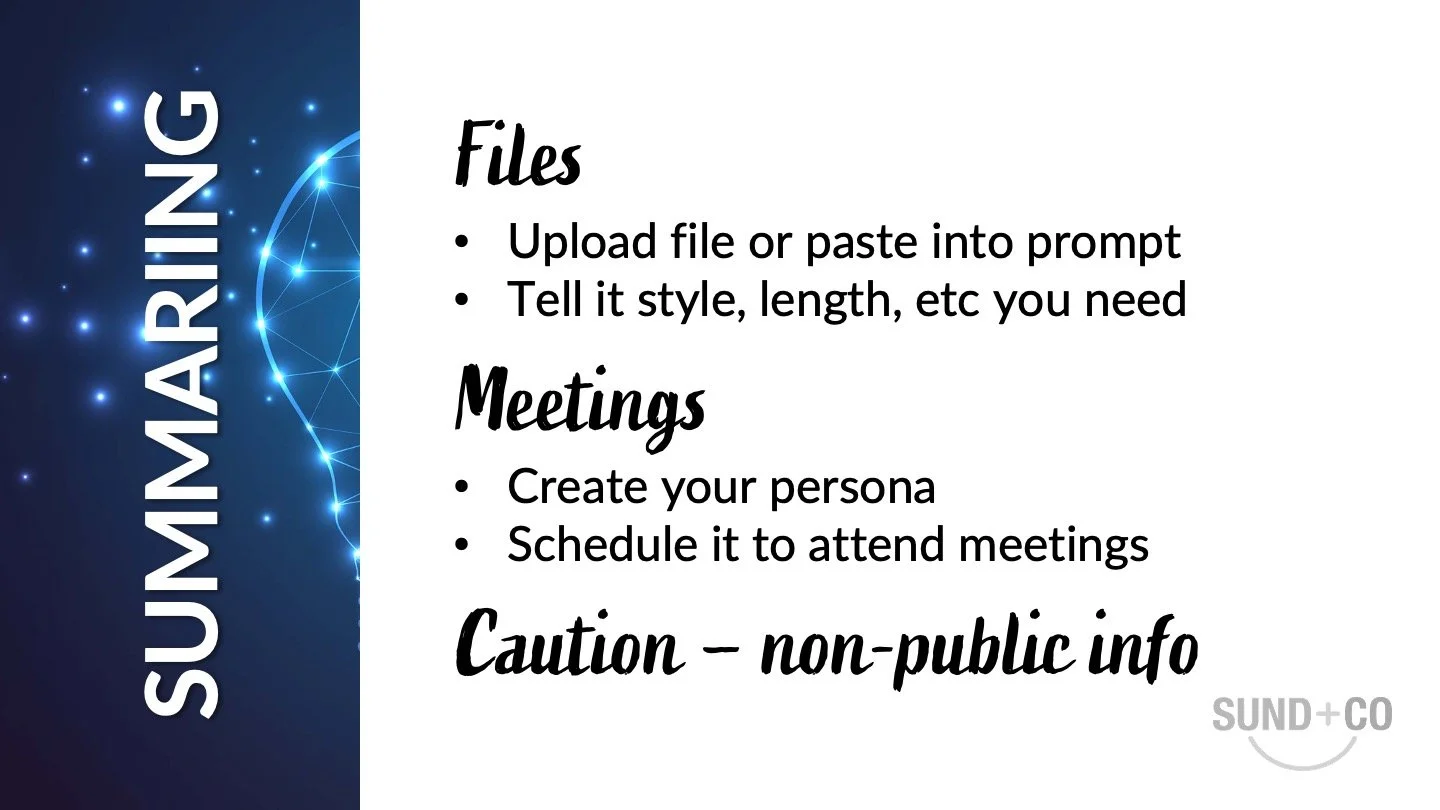 Video and audio-based AI tools can summarize meetings – create your persona and schedule it to attend the meeting.