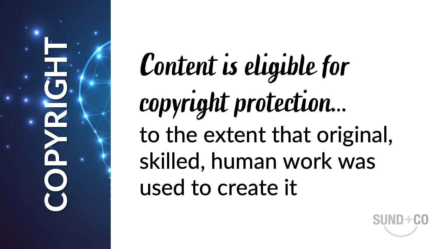 Content is eligible for copyright protection to the extent that original, skilled, human work was used to create it.