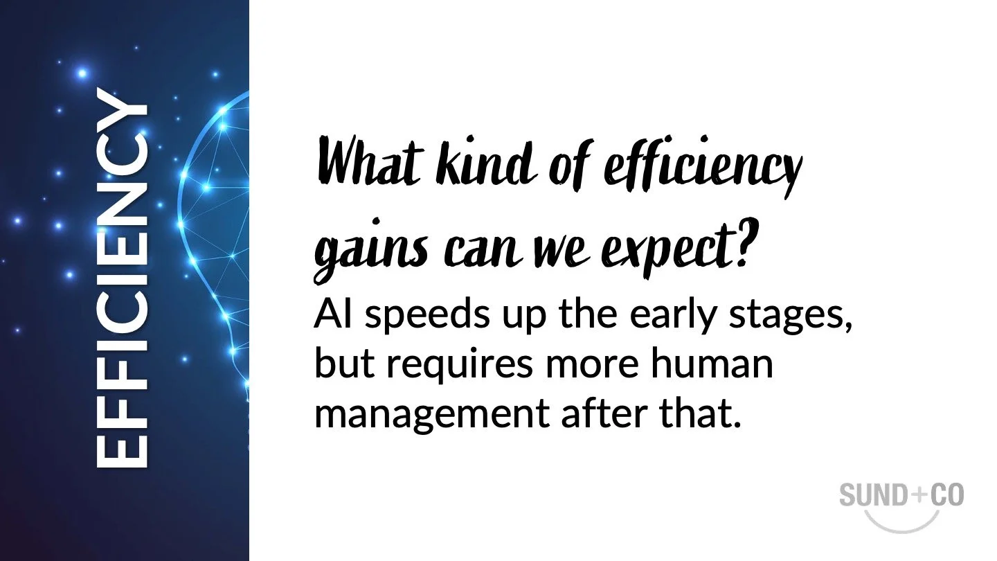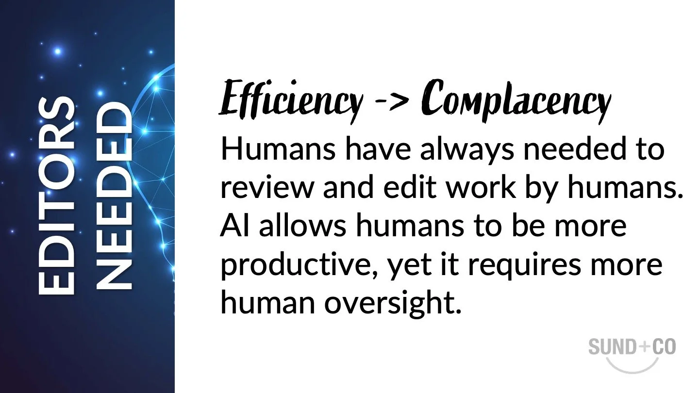 AIs allow us to be more productive, yet require more oversight. So professionals and managers need to keep in mind that the time savings are partly taken back by longer and more careful oversight and editing.