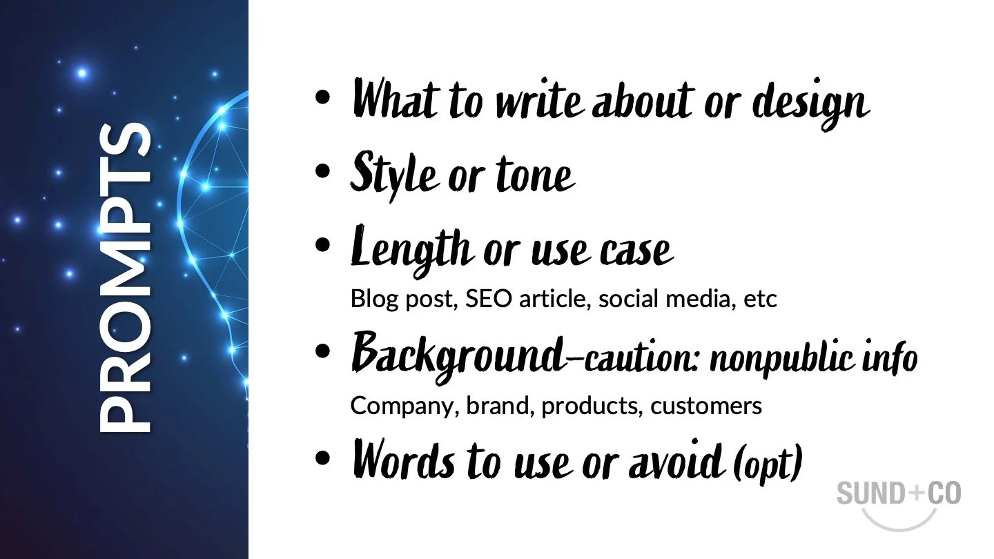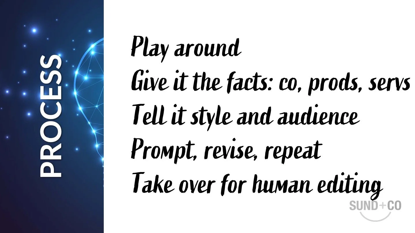 We didn’t spend much time on prompts, because there are so many examples out there – follow them or experiment and improvise.