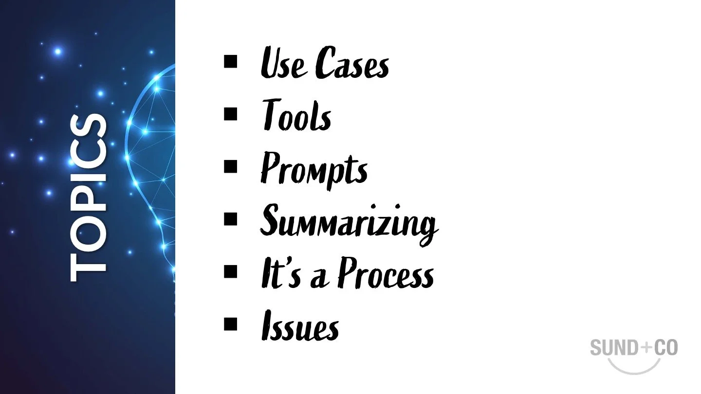 Studio director Mark Sund shifted gears to give a presentation about general business uses AI. Topics revolved around small companies using AI to improve efficiency and danger points to watch out for.